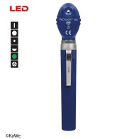 El KaWe EUROLIGHT® es un oftalmoscopio de alta calidad disponible con 1, 5 o 6 aperturas. La óptica de la lente técnicamente madura dentro del cabezal del oftalmoscopio permite una calidad de imagen óptima sin sombras. Las bombillas de xenón / halógeno, de vacío y LED garantizan una reproducción auténtica del color. ¡Iluminación buena y uniforme! Campo de exploración muy amplio del fondo de ojo.